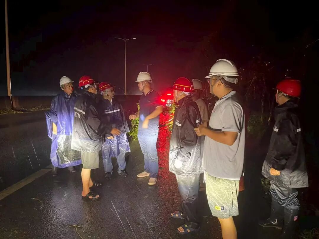 10月6日,项目持续加大抢险力量,配合徐闻县交通局进行主要干道抢通工作,现场管理人员顶着间歇性狂风,在泥泞中交替作业,于当晚24时顺利完成省道S547及S376部分路段32千米、徐闻县道约46千米的清障工作,以及徐闻大水桥水库坍塌围蔽工作,为返乡过节的游子打通了“生命通道”。