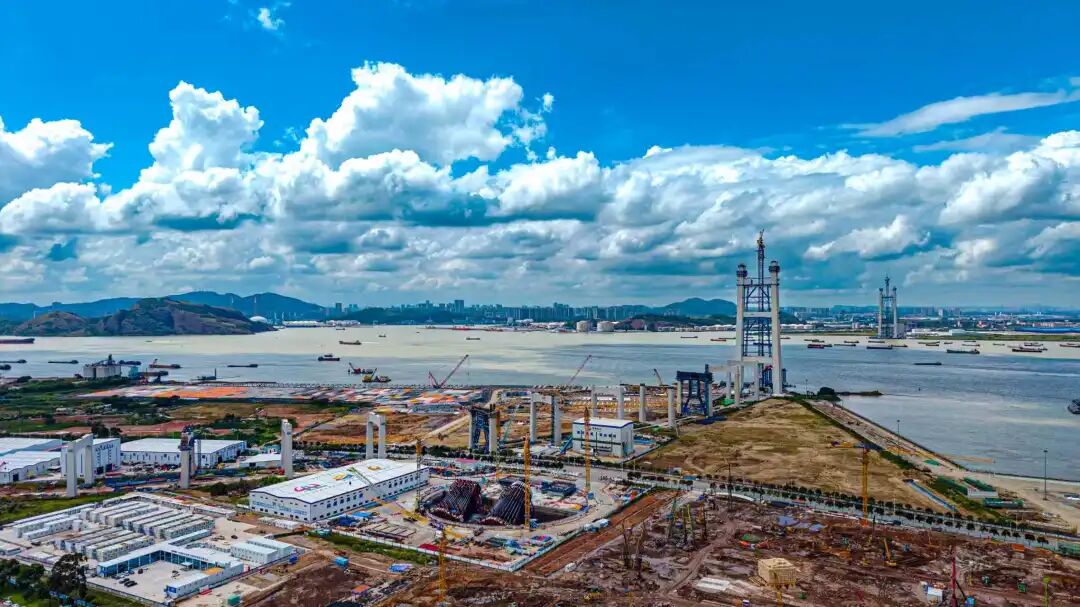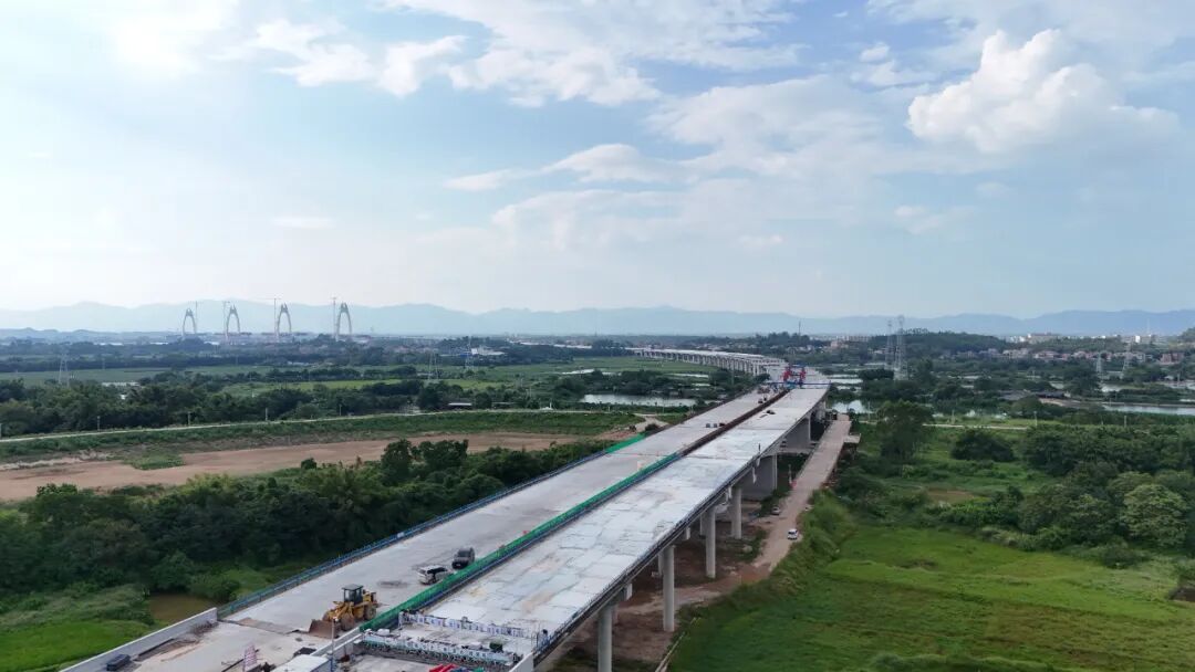 其中,狮子洋大桥主墩右幅T38节段混凝土浇筑顺利完工,横梁节段 1、2精准吊装到位;锚碇散索鞍支墩右幅第三层混凝土浇筑收官,引桥10#墩支架拆除高效推进,7#墩底板钢筋安装有序开展,全线呈现“多点开花”建设态势。