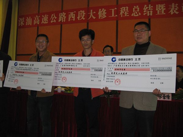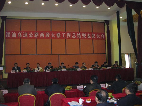 省交通厅陈冠雄副厅长、省交通集团黄建跃总工等领导在会上分别发表了讲话。在讲话中,各位领导对深汕西大修能在这么短的时间完成并取得优良成绩表示热烈祝贺,并高度称赞深汕西大修工程在项目管理、技术方案、质量控制、工程进度、交通组织等方面取得的成绩。公司在大修施工中灵活实施“半幅封闭,半幅单向通车”和“分段验收,分段开放交通,将工作面提前延伸到另半幅”的交通组织方案,大大加快了施工进度,有效缩短工期,是深汕西大修交通组织方案中的创新点。