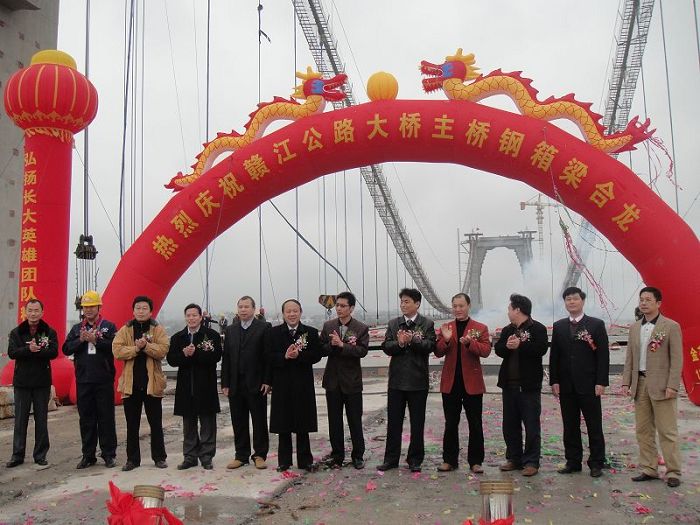 此次钢箱梁合拢引起了社会各界的广泛关注,赣州市委市政府、业主、监理单位、设计单位、监控单位以及各大供应商等均派出代表参加了此次合龙仪式。