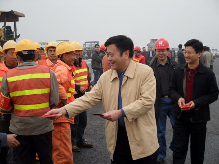 2010年2月22日至23日,省交通集团董事长朱小灵、总经理李静等领导在公司刘刚亮董事长和张焕新总经理的陪同下到公司太澳高速和江肇高速施工一线看望慰问建设者,并向广大员工送上新春的祝福。