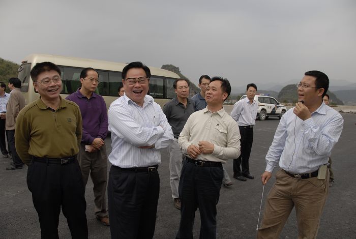 在广梧高速云安互通立交,云梧公司总经理林才奎向他汇报了项目建设情况。广梧高速自2007年11月全线开工以来,一切进展顺利,目前已进入最后的冲刺阶段。云浮市市长黄强说,广梧高速的征地拆迁工作做得非常到位,实现了赴省上访的“零目标”。周镇宏微笑着说:“看来这里的农民非常支持广梧高速的建设啊。”