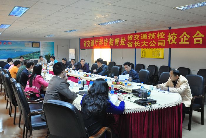 2010年4月28日,省交通厅科技教育处郑顺潮处长、广东交通高级技校阎子刚校长一行在王中文总工、人力资源部吴国学部长等的陪同下到我公司肇庆西江大桥项目部进行校企合作调研。