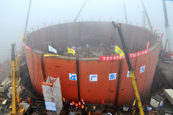 5月21日,公司承建的嘉绍跨江大桥项目主墩首个钢围堰实施沉放。这标志着该项目进入主桥承台施工阶段。首个钢围堰内壁直径39米,高26.5米,总重792吨。此次下放的为嘉绍大桥Ⅳ标Z3主墩钢围堰,整座跨江大桥主航道南北两岸共有6个主墩钢围堰,公司承建其中3个。下放当天,公司董事长刘刚亮、总经理张焕新、总工程师王中文到施工现场指导下放工作。