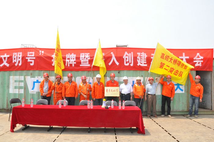此次动员大会的地点选在了正在进行关键工序(首个钢围堰下放)施工的Z3主墩平台,更好的契合了青年文明号活动以服务施工生产工作中心的主题。长大公司党委书记叶清华、老专家林荣有、李兆祥应邀出席了动员大会。公司党委书记叶清华、老专家林荣有共同揭牌,叶书记还分别为三个青年突击队分别授予了青年文明号旗。并鼓励广大青年员工:要深刻领会“青年文明号”的重要意义,沿袭公司青年文明号活动的优良传统,发扬敢打敢拼的奋斗精神,在这座国内难度最高桥梁建设过程中,坚定信心,再接再厉,发扬英雄团队作风,努力拼搏,积极创新,为公司“大干、提升”的奋斗目标贡献自己的最大力量。