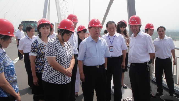 8月20日,全国人大内务司法委员会主任委员、交通部原部长黄镇东在湖北省人大常委会副主任蒋大国、省交通运输厅厅长林志慧的陪同下,到即将建成通车的鄂东大桥考察。