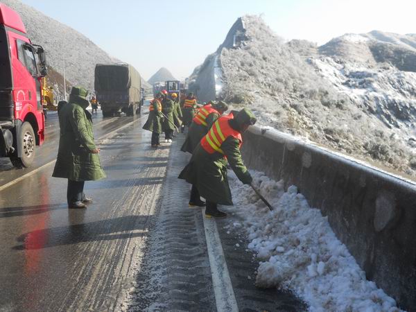 16日上午十时,第一批抢险设备10台、人员40多人到达京珠北段受灾最为严重的K1884路段,当时此路段已结起了近5厘米的坚冰,堵起了近30公里车龙。两个抢险小分队迅速组织开展抢险工作,有条不紊地铲除路面的冰层,成堆后清理到路肩外,并指挥过往的车辆有序地通过。经过近三个多小时的抢险作业,终于在中午13时把该路段的冰层清理完毕,正常恢复车辆通行,第一轮抗冰战役取得圆满成功。