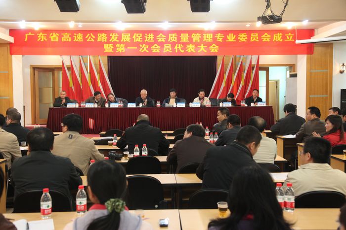 2010年12月27日下午,广东省高速公路发展促进会质量管理专业委员会成立大会暨会员代表大会第一次会议在广州召开。省高速公路发展促进会领导以及来自专业委员会会员单位的代表共29人参加了会议。会议审议并通过了《广东省高速公路发展促进会质量管理专业委员会管理办法》(征求意见稿),选举产生了专业委员会主任委员王中文、常务副主任委员刘永忠及秘书长崔向前等领导机构人员。