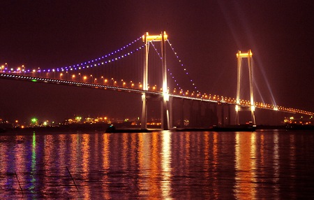 珠江黄埔大桥是目前华南地区建设规模最大、质量要求最高、技术最复杂的特大型桥梁工程之一。我公司主要承建大桥南锚碇、南主塔和钢箱梁悬索桥等代表性工程项目;项目于2004年底开工,2008年11月建成通过验收。