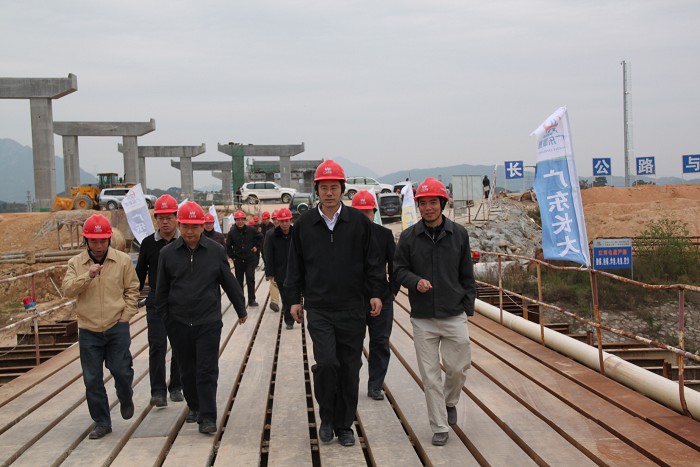 2011年3月16日上午,广东省交通运输厅厅长何忠友一行在地方政府、业主领导的陪同下第四次来到广乐高速T27标视察。自广乐高速建设以来,作为首批实行标化建设的标段,何厅长尤为关注广乐T27标的标化建设情况,高度重视施工进展。