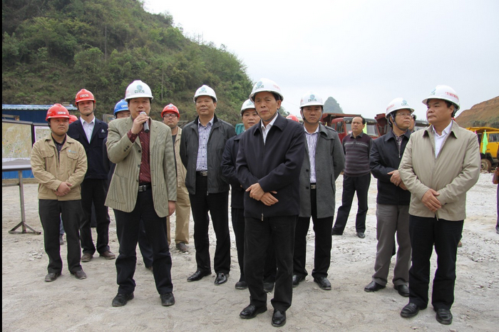 4月11日上午,全国政协副主席李兆焯一行在广西自治区各级领导的陪同下莅临靖那二标坡荷隧道进口施工现场视察工作。