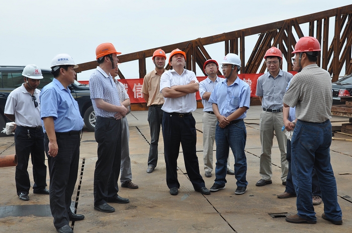 2011年7月18日上午,国家交通运输部质监总站站长李彦武到嘉绍跨江大桥IV标项目指导施工建设。