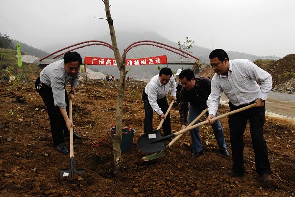 广梧高速公路的建设理念是“安全、环保、舒适、和谐”,在绿化方面,坚持“不破坏就是最大的保护”的思想,严格按照环境友好型高速公路的理念进行施工,边坡绿化尽量沿用原有表土和乡土植物。