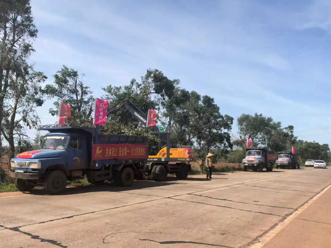 10月6日,项目持续加大抢险力量,配合徐闻县交通局进行主要干道抢通工作,现场管理人员顶着间歇性狂风,在泥泞中交替作业,于当晚24时顺利完成省道S547及S376部分路段32千米、徐闻县道约46千米的清障工作,以及徐闻大水桥水库坍塌围蔽工作,为返乡过节的游子打通了“生命通道”。