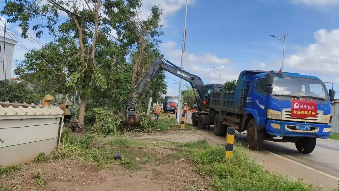 台风登陆点徐闻县灾情最为严峻,主干道上倒伏的树干纵横交错,部分路段积水较深。面对救援环境复杂、清理工作举步维艰等挑战,项目投入10余台清障设备及运输车,积极协同当地交通局开展工作。经过抢险人员持续6小时不懈的努力,至凌晨3时30分,徐闻至雷州段20千米主干道恢复通行,为返乡过节的游子们提供了极大便利。