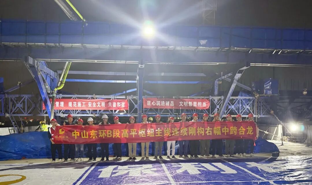 11月3日,中山东环B段项目高平枢纽首个主线连续刚构中跨顺利合龙,为实现全线贯通奠定坚实基础。