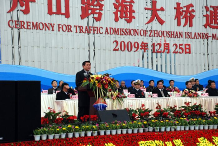 12月25日,迄今为止规模中国最大的陆岛联络工程、历经十年时间建设的舟山跨海大桥正式全线试通车,公司总经理张焕新同志应邀参加了通车仪式。