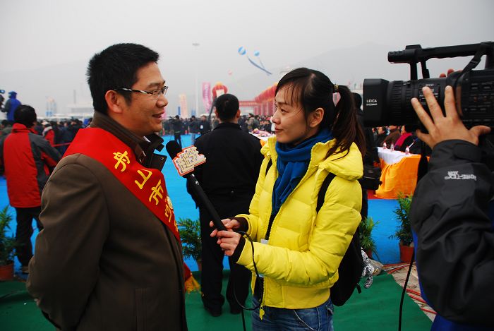 图为舟山市劳动模范、公司原金塘大桥项目部经理李志生同志接收媒体采访